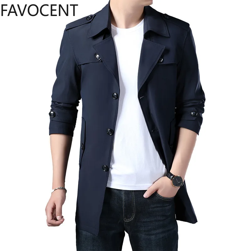 Free Shipping 50% OFF Mens Trench Long Coat Fashion Male Solid Color Casual Mens Trench Coat Jacket Spring Autumn Overcoat Military Turn-down Collar are attractive to buyers from around the world
