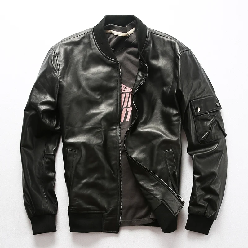 Free Shipping Deals AL1937 hot sale sheep leather clothing Mens over size genuine sheep leather simple design slim leather jacket outerwear are attractive to buyers from around the world