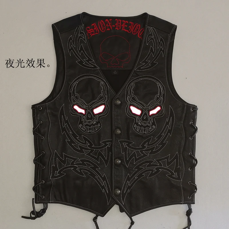 SPECIFICATIONS Product Flash Sale Read Description! Asian size super quality Cow leather vintage waistcoat men's cowhide stylish light reflecting embroidery vest